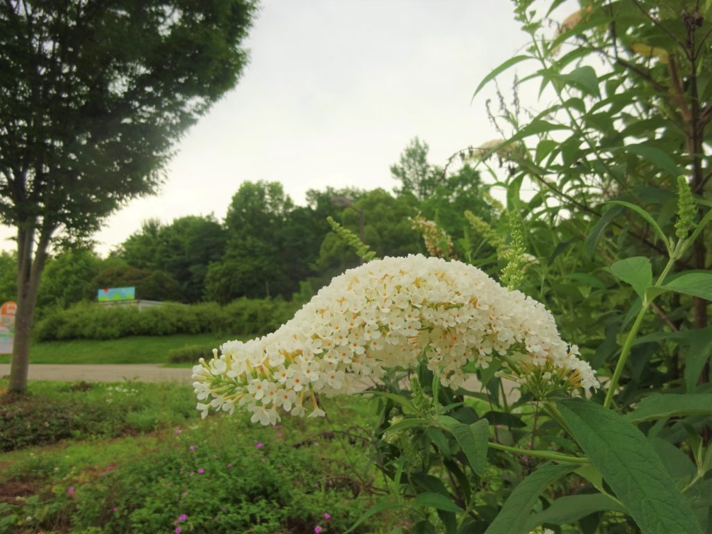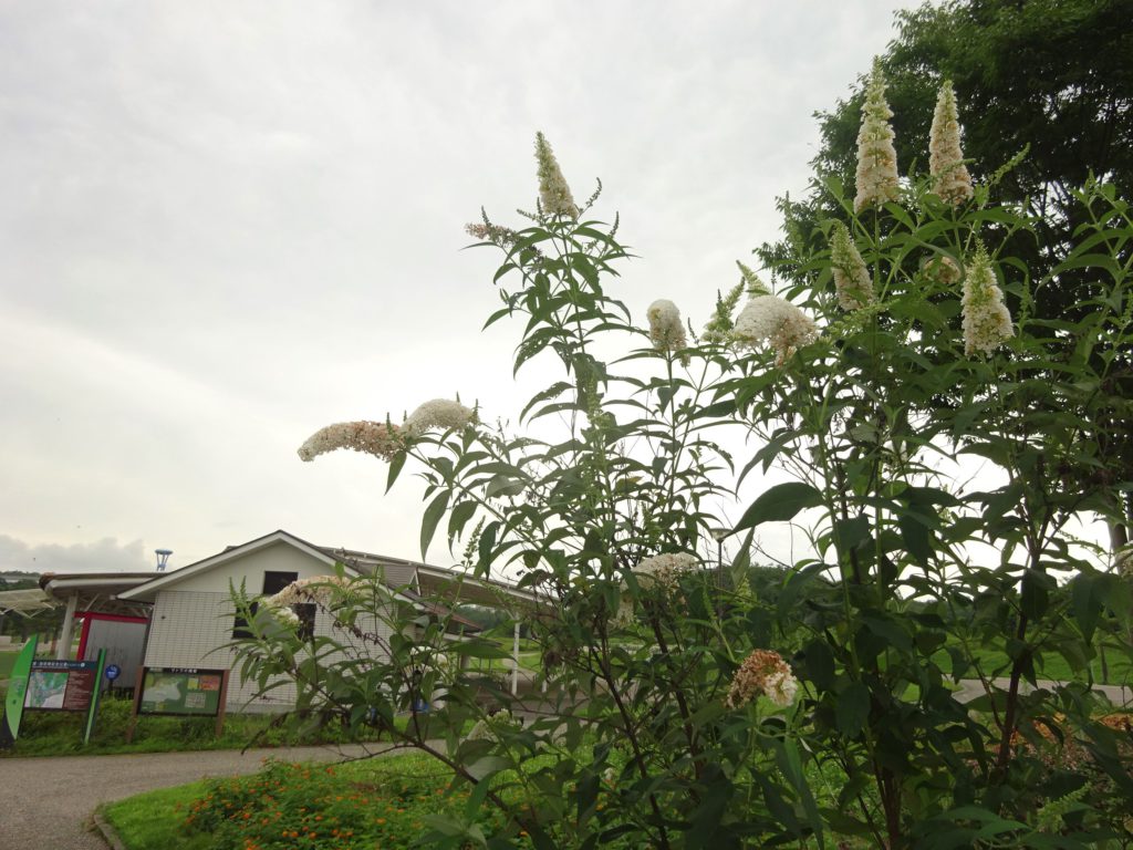 三日月休憩所とスケート場の間のブッドレアは白い色をしています。