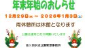 年末年始のお知らせ