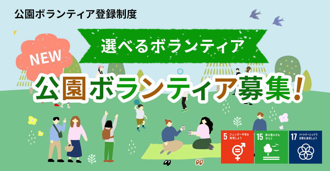 私たちは、『みどりや自然環境の大切さ』に関心がある方、イベントが好きな方、趣味や特技を活かしたい方など、よりよい公園づくりのため、皆様と一緒になって楽しく活動できるよう選べるボランティアを新設しました。ボランティア活動に興味のある方の参加を随時募集しています!!
