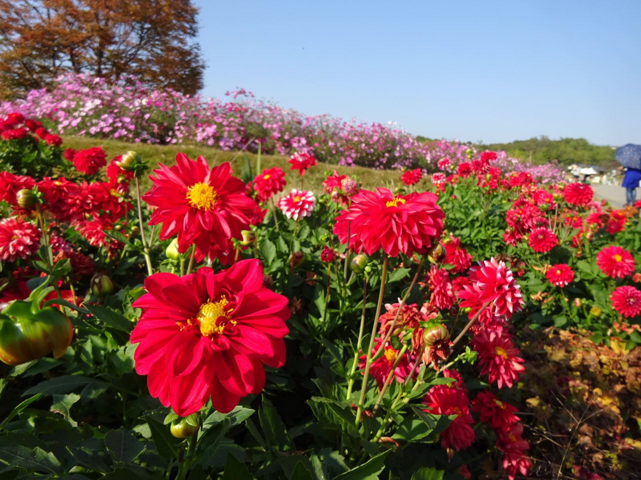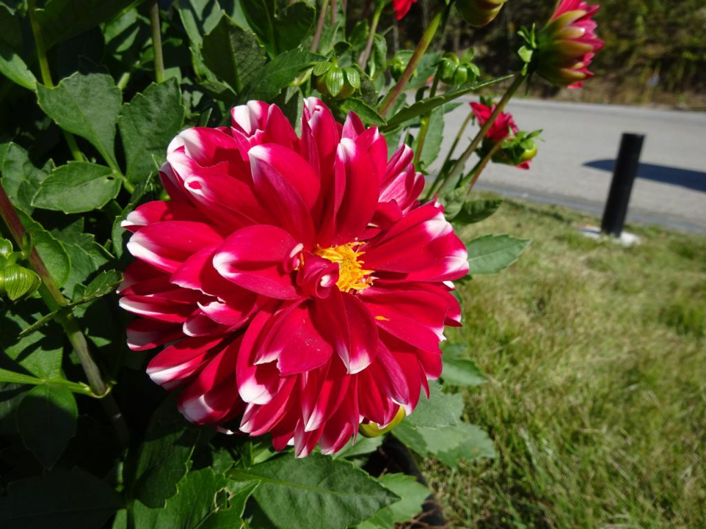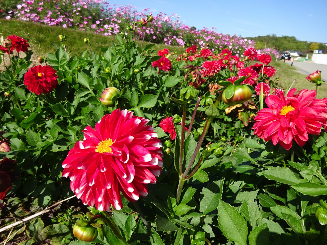 大芝生広場のお花畑の脇に「ダリア」が咲いています。