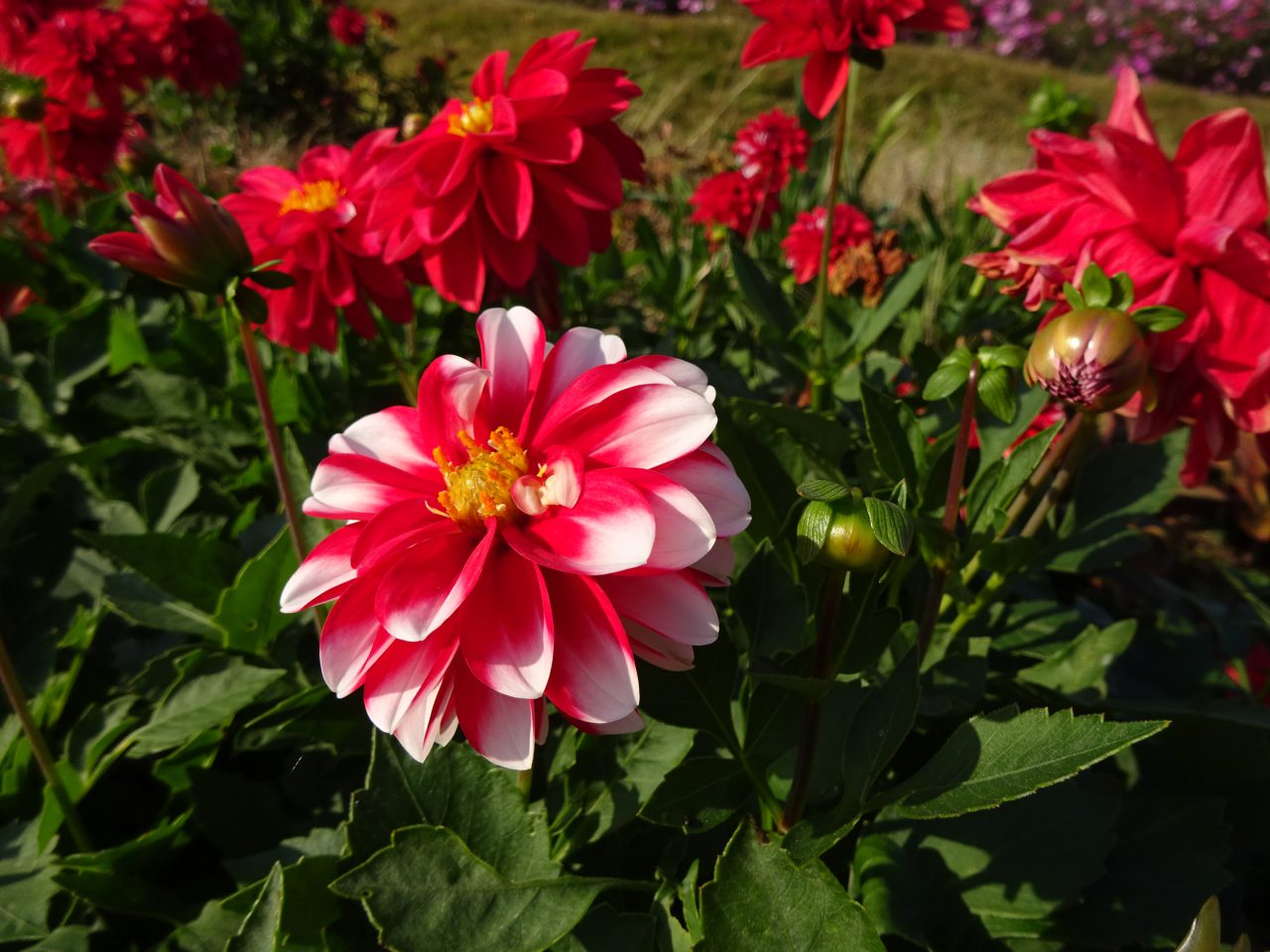 お花畑の脇に「ダリア」が咲いているのを見つけました。