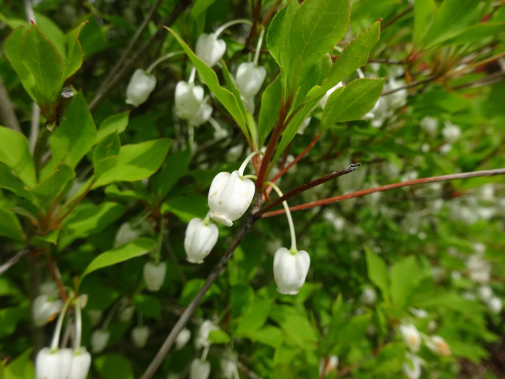 (2023.04.18の様子) こいの池脇の遊歩道のドウダンツツジが咲き始めています。 小さな白い花がとても可愛らしいですね。