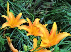 修景庭園池周りの南側散策路登り口に、今年もノカンゾウが咲きはじめました。