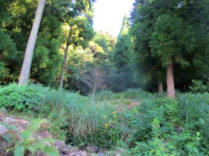 ノカンゾウが生育する周囲の環境は獣害により荒れていますが、それにも負けず、オレンジ色の花々が色鮮やかに開花しています。