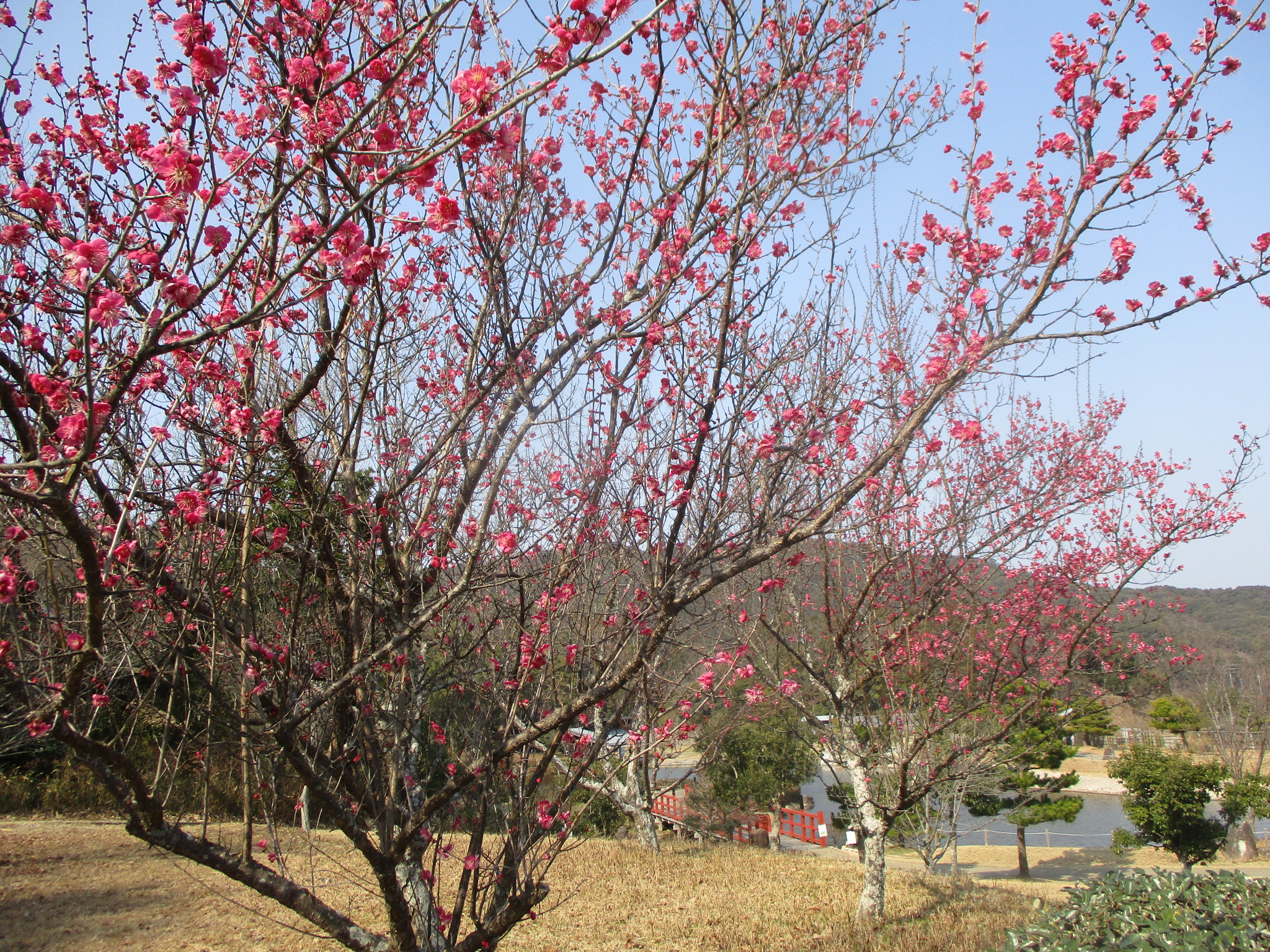 現在ふるさと公園では、梅の広場と修景庭園奥で梅の開花が進んでいます。