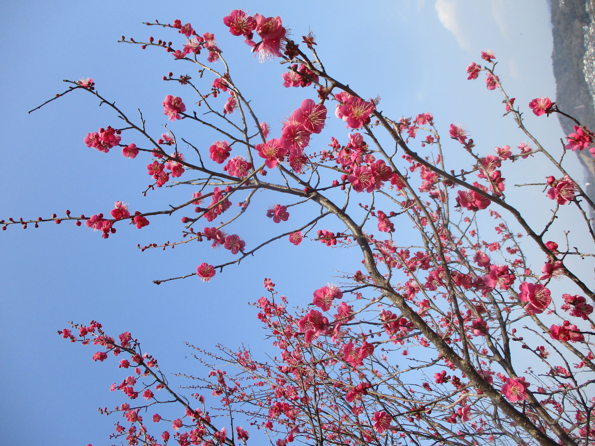 修景庭園にあるトイレ裏の階段を上がった先の梅がきれいに咲いています。