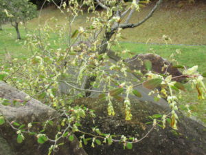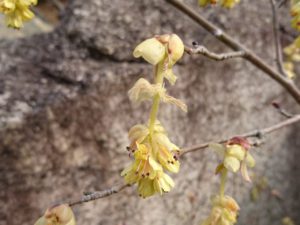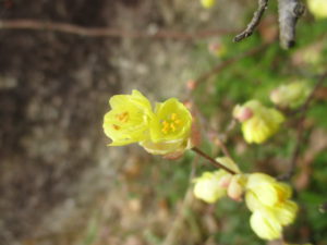 トサミズキ(土佐水木)とヒュウガミズキ(日向水木)が咲いています。