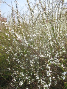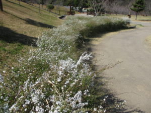 開花時期を迎えると枝いっぱいに小さな白い花をたくさん咲かせるユキヤナギは