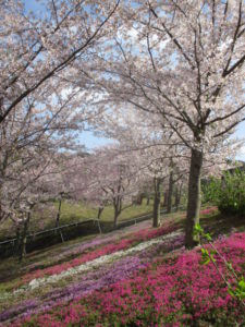 今なら散りはじめのサクラと7~8分咲きのシバザクラを両方楽しめますよ!
