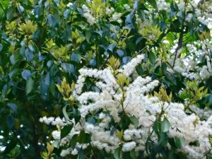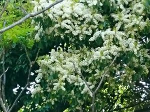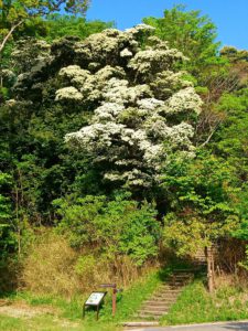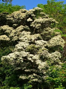 「高い木の上のほうに咲いているフワフワした白い花は何ですか?」
