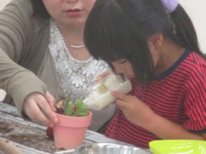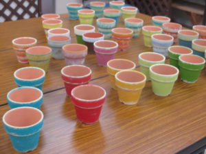 先生が色づけしてくれたカラフルな鉢のなかから好きなものを選んで、