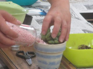 土を入れて多肉植物を植えていきます。