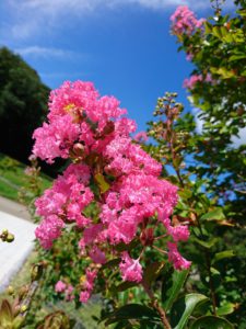 サルスベリが今年も綺麗に咲いています、長い期間花が咲いているので、漢字では『百日紅(ヒャクジツコウ)』とも書きます。実際は、一つの花が咲き続けるのではなく、次から次へと花が咲いていくのだそうです。