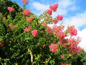 サルスベリが今年も綺麗に咲いています、長い期間花が咲いているので、漢字では『百日紅(ヒャクジツコウ)』とも書きます。実際は、一つの花が咲き続けるのではなく、次から次へと花が咲いていくのだそうです。