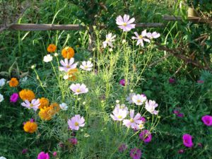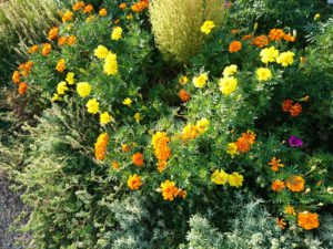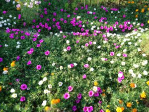 びっしり咲いたマツバボタンや、ヒマワリコスモスマリーゴールドなど