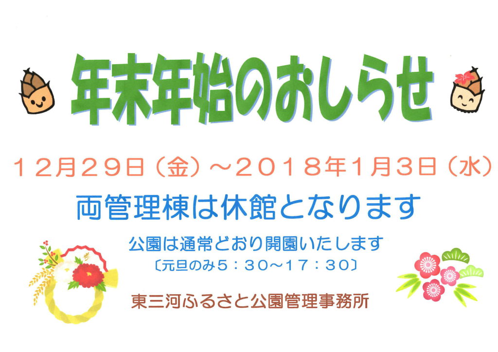 明日から管理事務所は休館となりますが、ふるさと公園は年末年始も開園しています。
