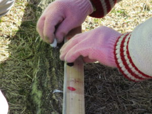 親子で菌打ちしたホダ木を大切に持ち帰りました。