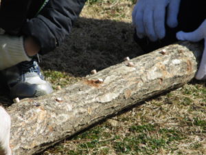 自分で菌を打ったしいたけが出てくるのは1年後!楽しみですね♪