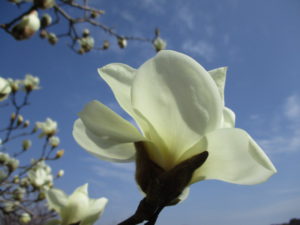 青空をバックにモクレンの白さが際立ってとても綺麗です。