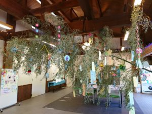 最終日の 7月7日(土)には、折り紙、こより、短冊、園内で採集した
