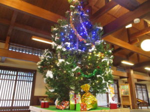 こちらも園内で採集したスギ製の巨大なクリスマスツリーも設置中ですので、