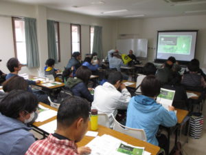 まずは、研修室で里山についてのお勉強会。