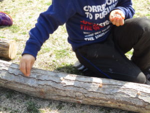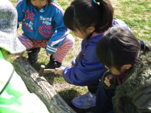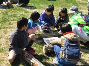 コナラのほだ木を使って菌打ちを体験していただきました。