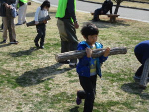 とよかわ里山の会のみなさんによって、事前にふるさと公園内で伐採していただいた