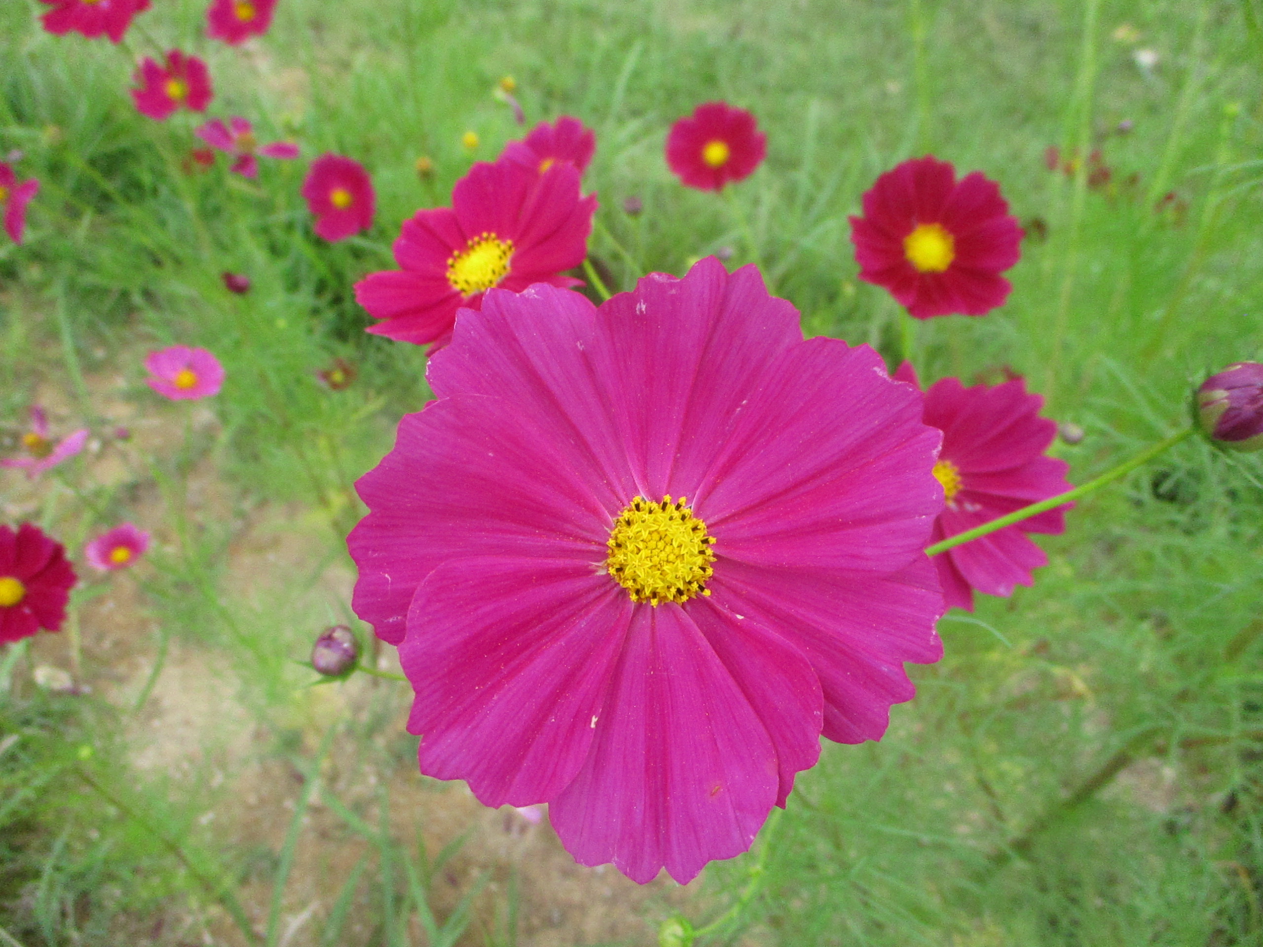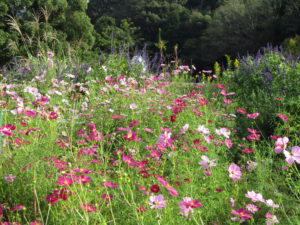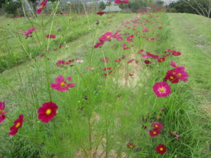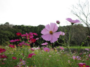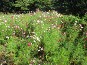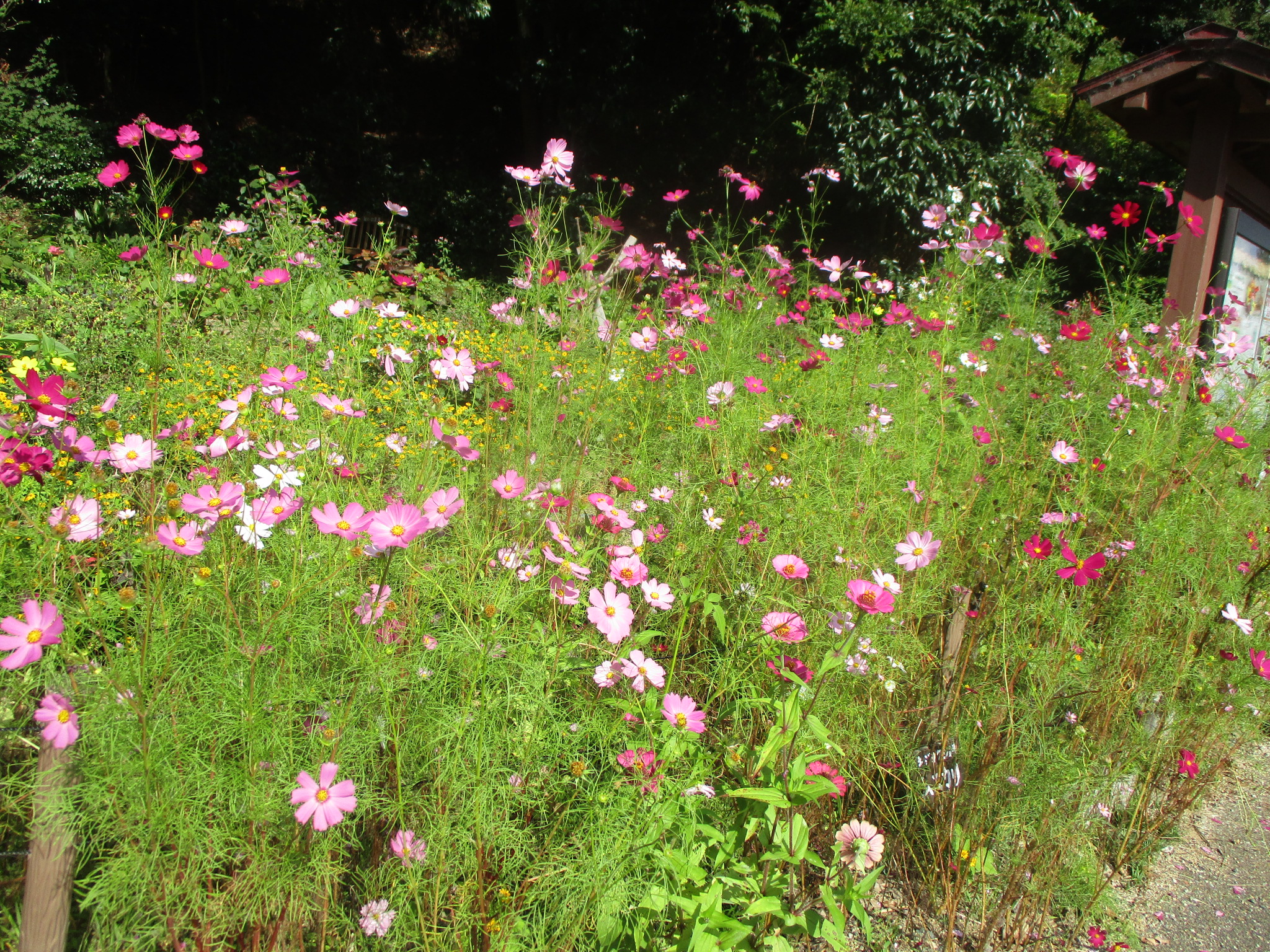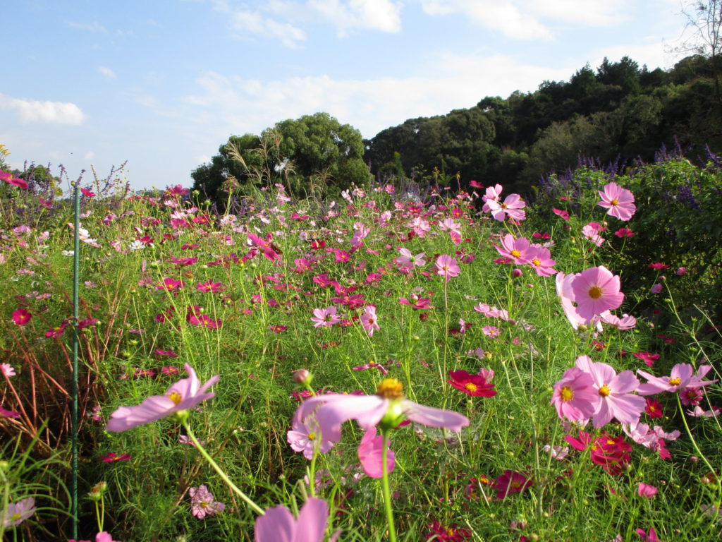 秋風に揺れる、赤やピンクや白色のコスモスをご覧になってくださいね。