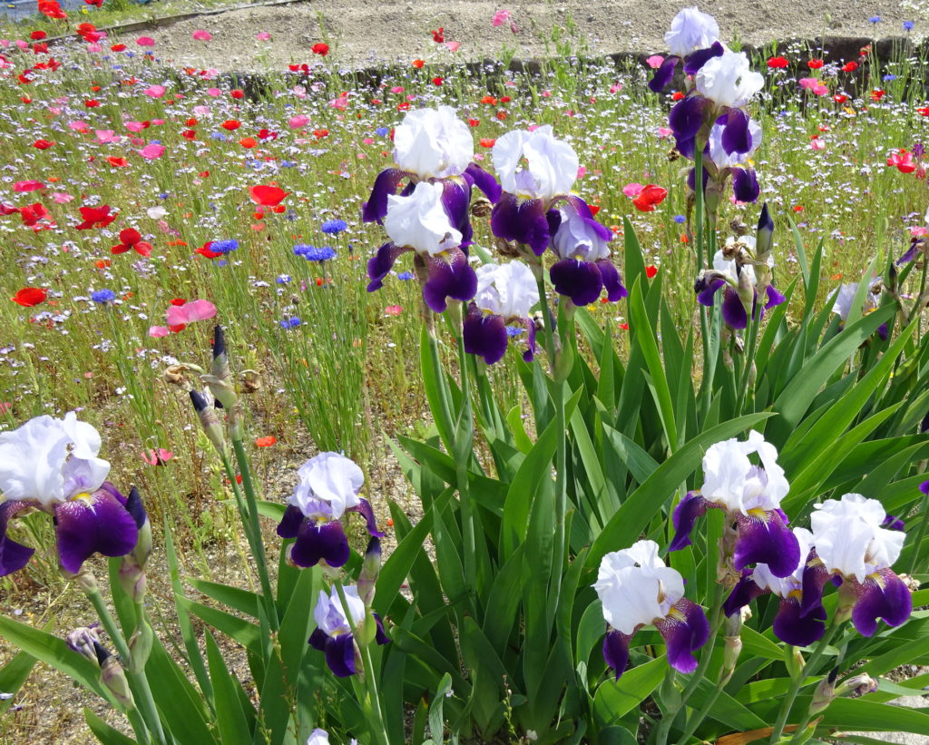 この季節も色々な種類の花が咲いていますが、ひときわ目立っているのがジャーマンアイリスです。