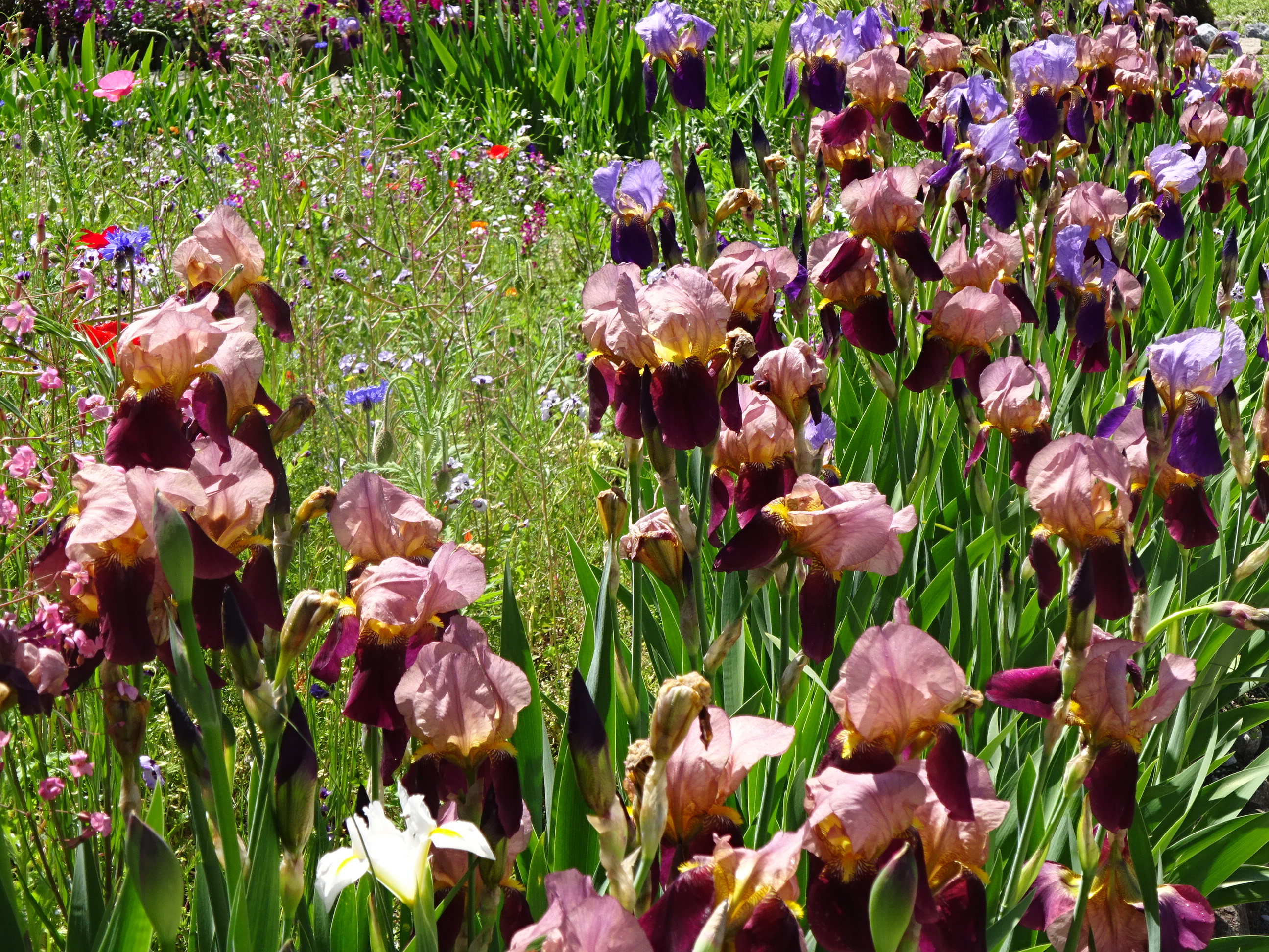 この季節も色々な種類の花が咲いていますが、ひときわ目立っているのがジャーマンアイリスです。