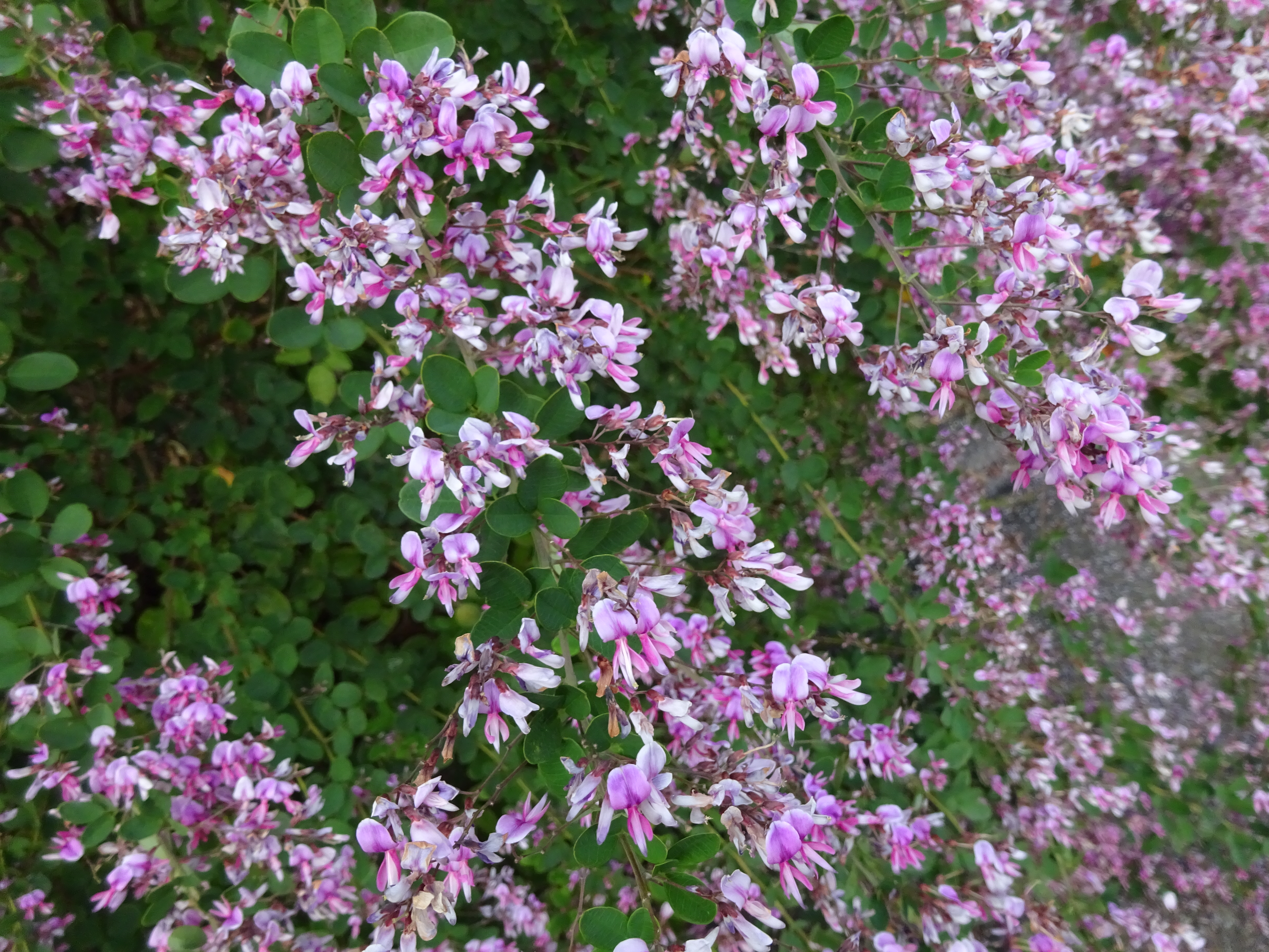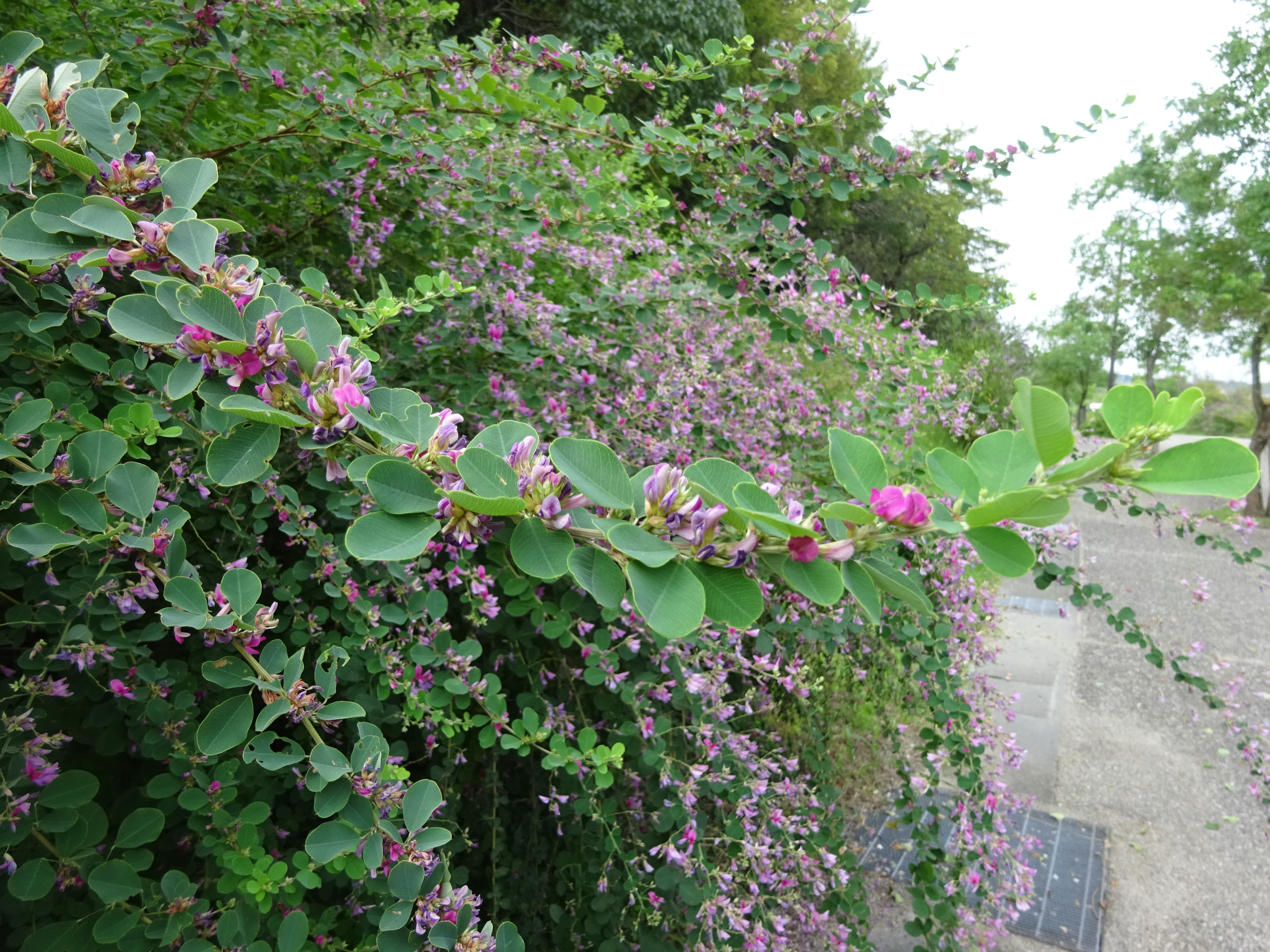 西口バス停の近くで「ハギ」がきれいに咲いています。
