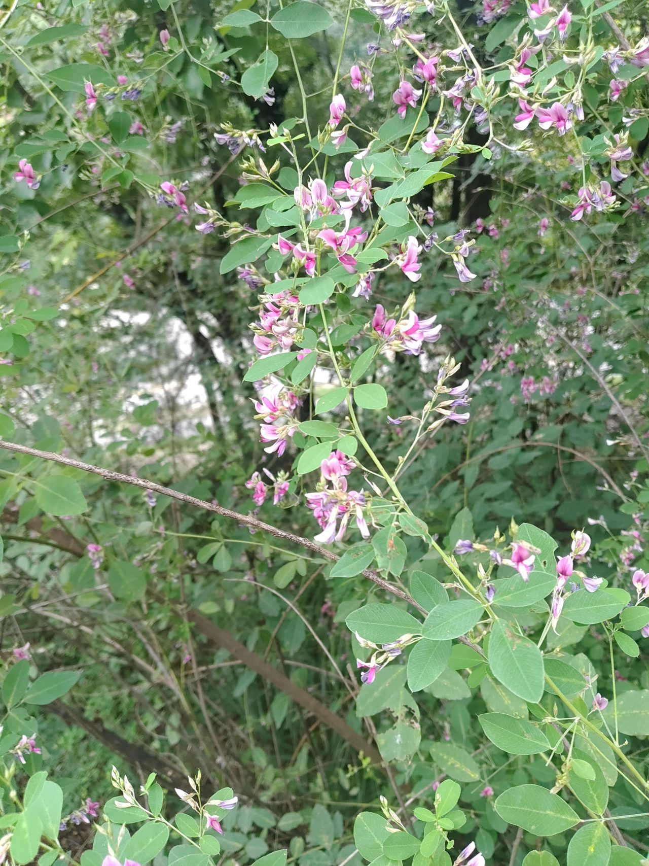 ハギが赤紫色の花を咲かせています。