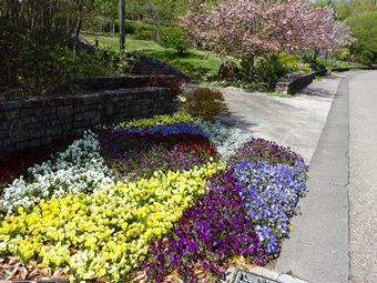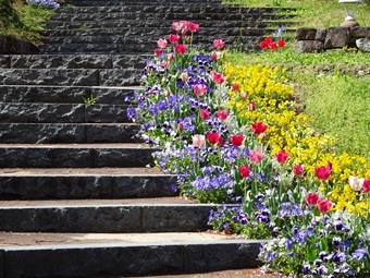さらに大花壇の階段脇には美しい花々が咲いています。