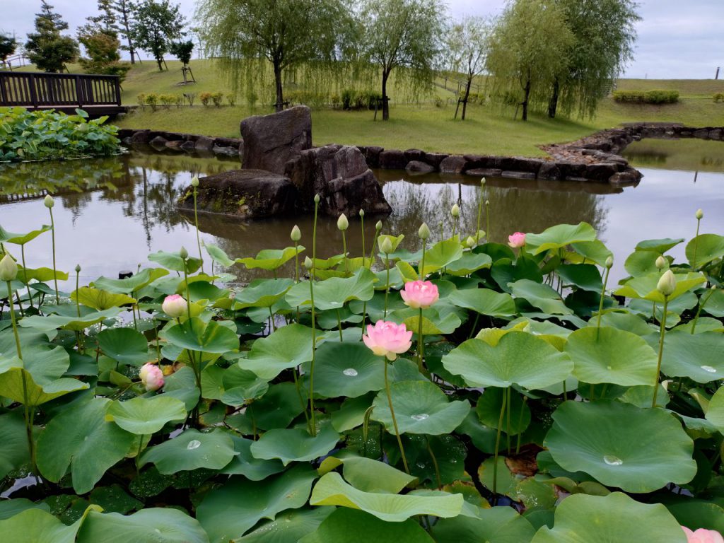 ハス池も同様で、昨日から今朝にかけての雨の影響で水嵩が増しています。