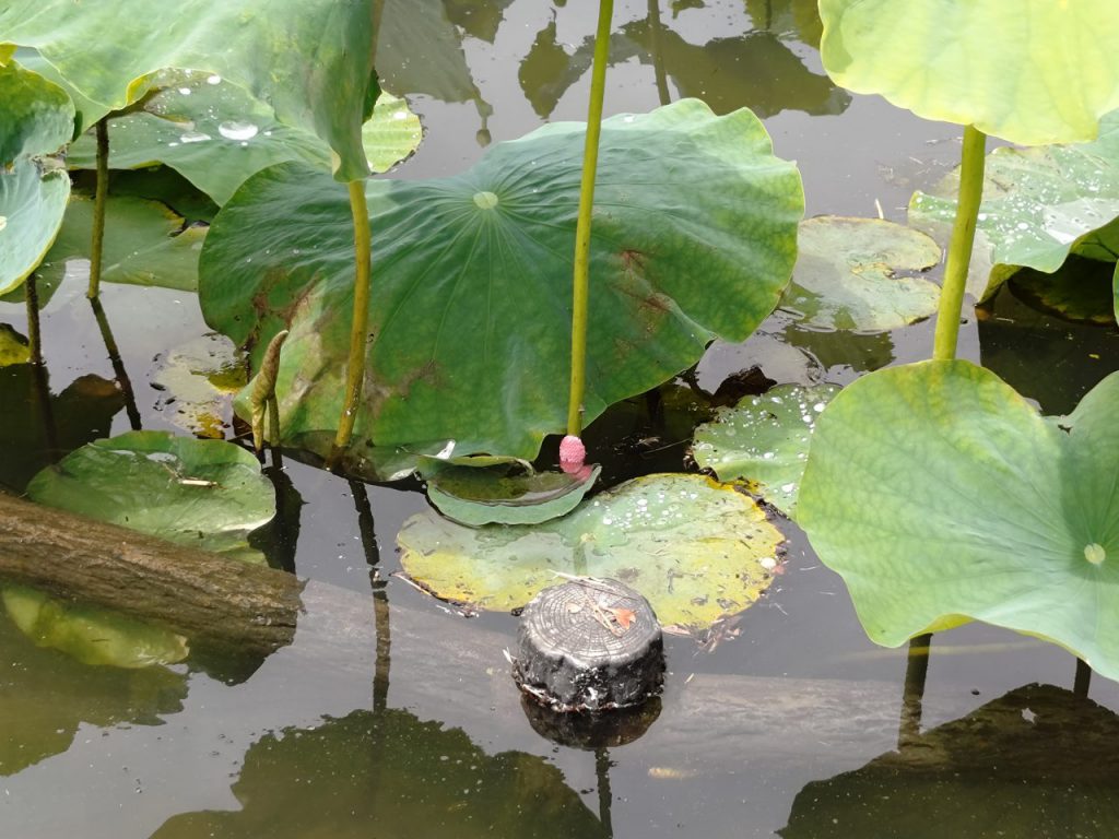 生き物の本能ってすごいですね。中央のピンク色、何か判ります? ハスの蕾じゃないですよ。