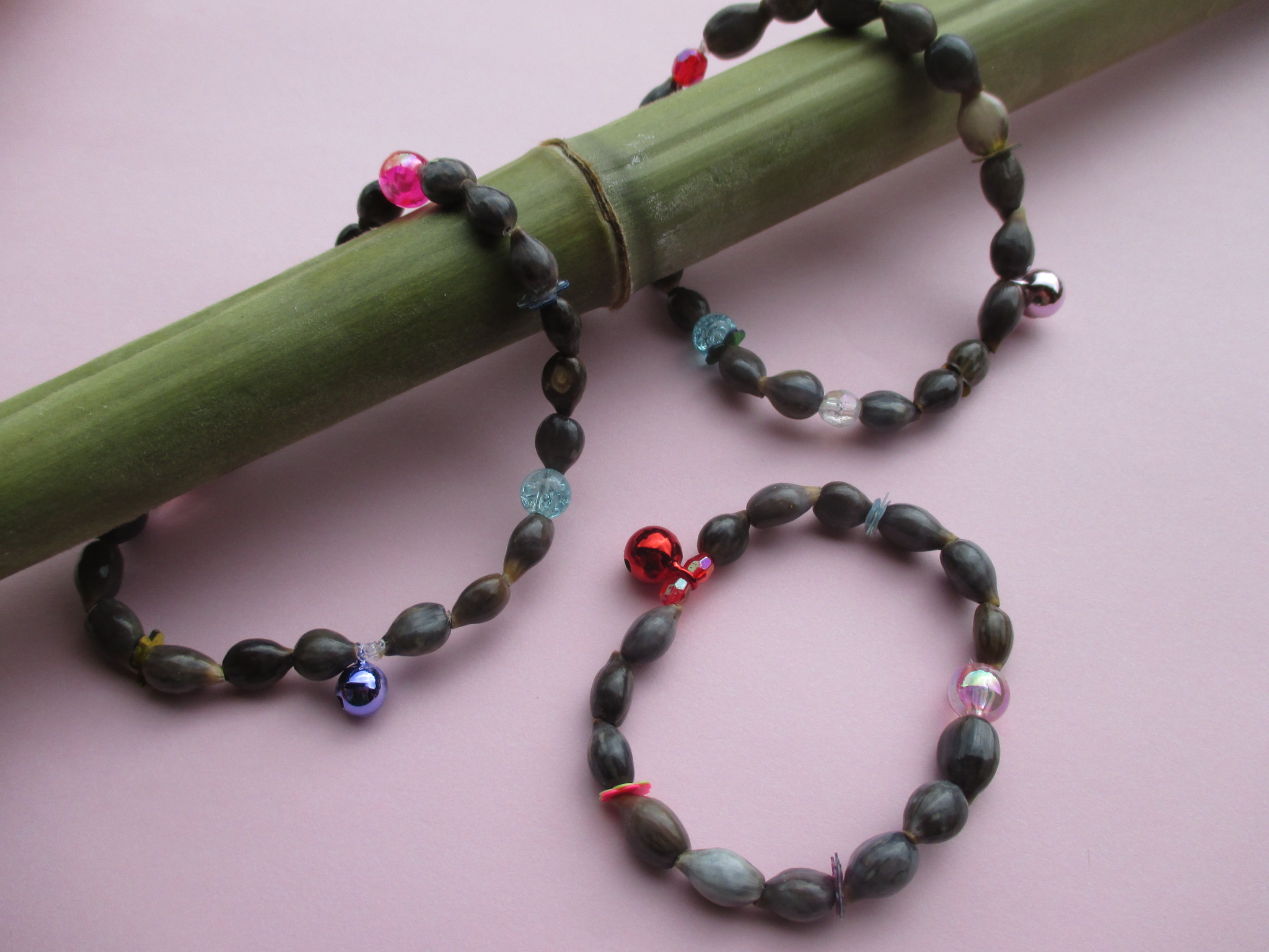 女の子に一番人気なのがジュズダマという植物を使って作るブレスレットです。