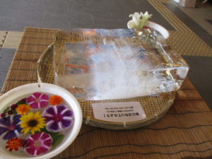 そして、本日も朝から氷屋さんで買ってきた大きな氷を展示してますよ。