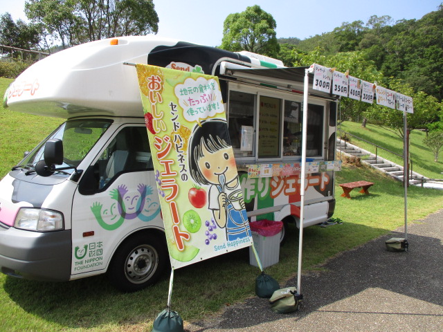 また、管理棟前では、ジェラートを「ハピネス」さんが、わらび餅の詰め放題とラムネを「ゆめ福庵」さんが出店しています。
