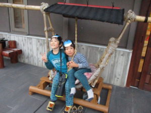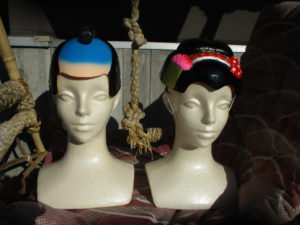 ただいま、ごゆ側管理棟内では、チョンマゲと町娘の被り物を貸し出していますので、