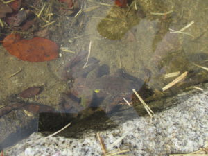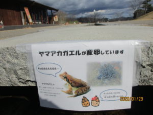 ごゆ側管理棟前にある水路では、ヤマアカガエルが産卵を始めましたよ。