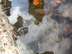 水路に近付くと親ガエルが、キュルルルル、キュルルルル… と、とても可愛らしい鳴き声を