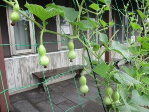 今年はヒョウタン、フウセンカズラ、スズメウリが加わりました。