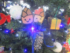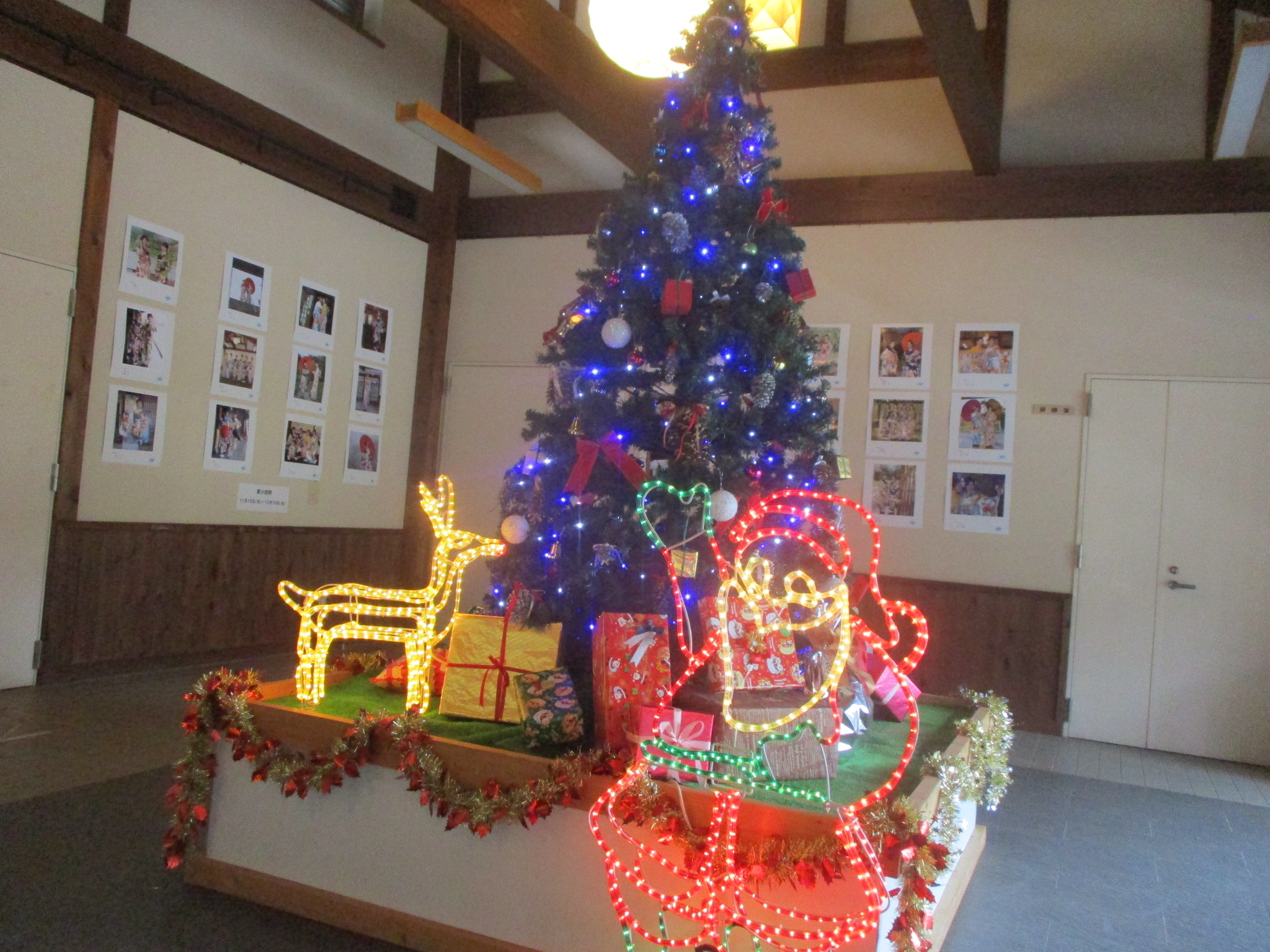 先週よりごゆ側管理棟ロビーにて、飾り付けしたクリスマスツリーを展示しています????