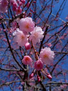 ????歩行者階段に沿って咲く「シダレザクラ」はまだ蕾も多く、3~4分咲きほどでしょうか。