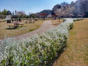 ????修景庭園の「ユキヤナギ」とのんびりコース登り口の「レンギョウ」も満開に近付いてきました。