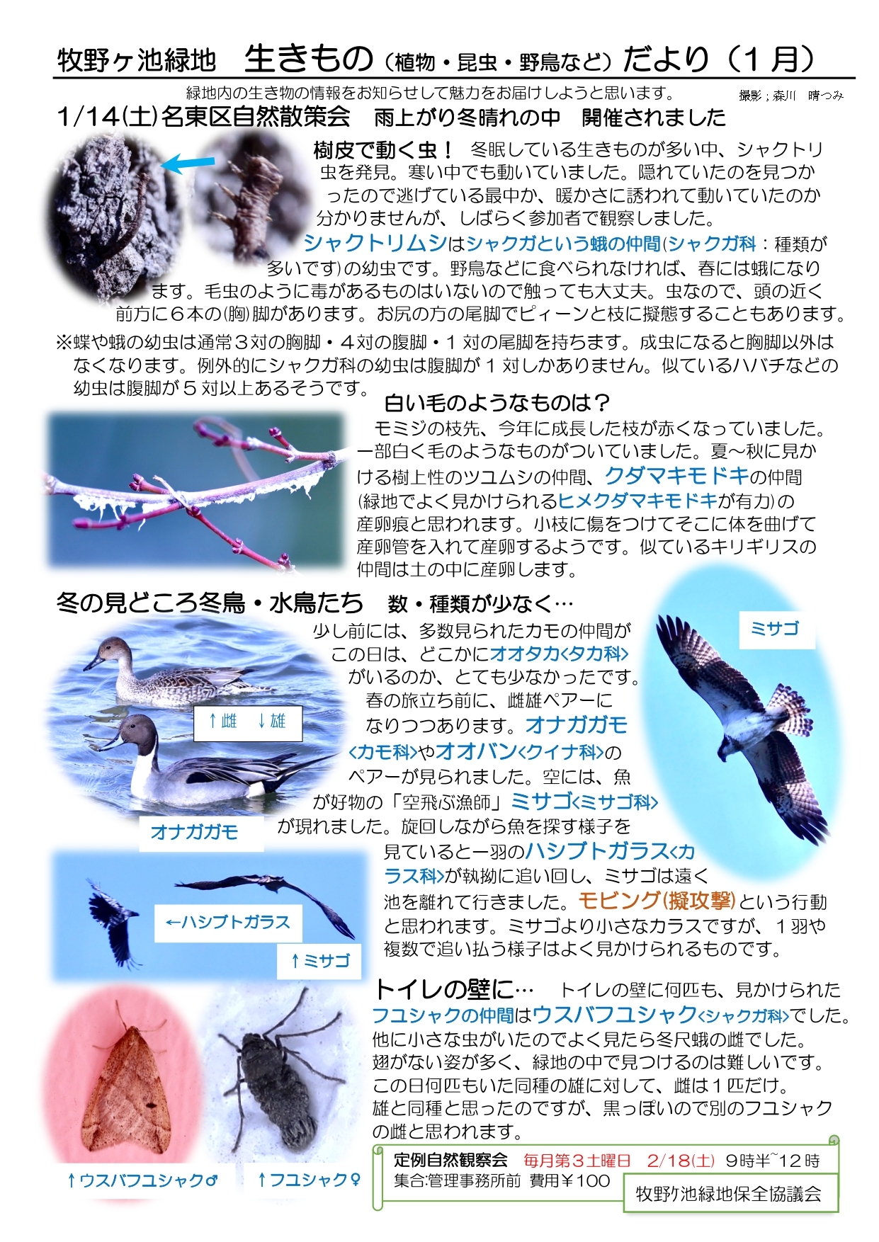 【お知らせ】牧野ケ池緑地生きものだより(1月)