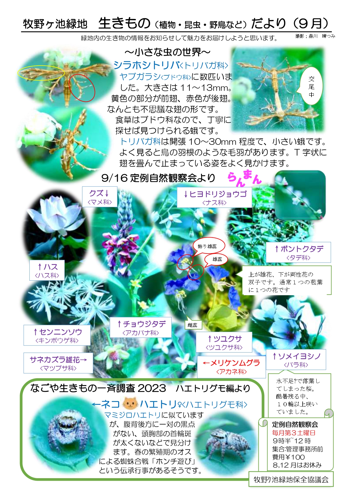【お知らせ】牧野ケ池緑地生きものだより(令和5年9月) 更新日 2023/10/06 牧野ケ池緑地生き物だより(令和5年9月)が届きました。 こちらは、牧野ケ池緑地保全協議会の方々により作成されています。 牧野ケ池緑地の自然の魅力を再発見してみませんか。