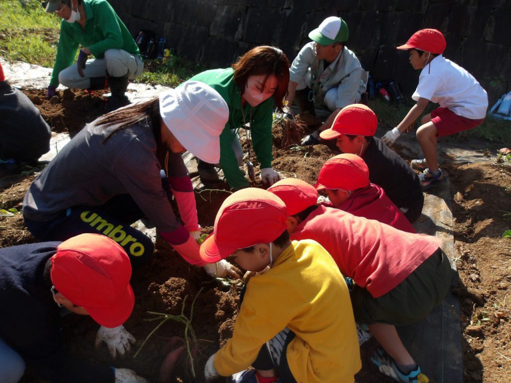 苗は順調に成育し、ようやく収穫の時期を迎え、サツマイモ掘り体験をしていただきました。