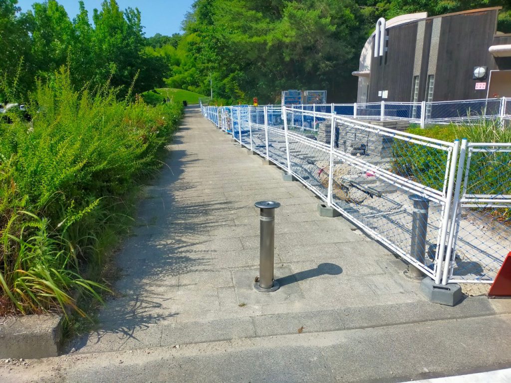 令和5年5月から実施しています給水管工事に伴い、西口駐車場トイレ前の歩道が半分通行できません。